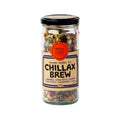 Chillax Brew is a soothing herbal tea infused with rose, lavender, chamomile, lemon balm, and ashwagandha, crafted to promote deeper, more restful sleep. (Approx. 25 servings)